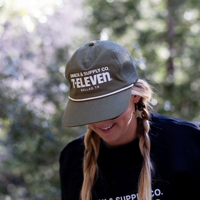 A modern take on a classic rope cap. The Snack & Supply Rope Hat features a structured crown, curved brim, and vintage rope detail across the front.